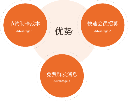 (1)消费,储值,积分变动自动推送,让消费者者使用的明明白白,安全保障,同时站点活动精准营销人人推送。