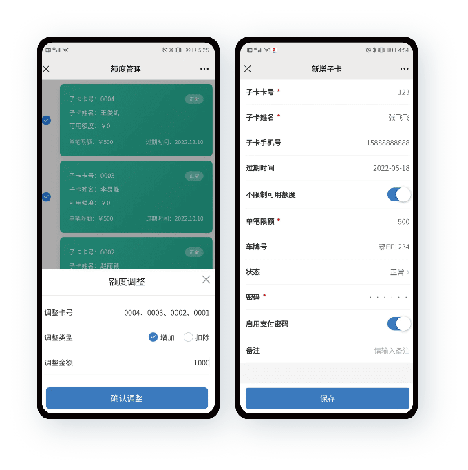 针对同时拥有多辆汽车的特殊客户群体,纳客智慧油站系统推出了子母卡(主副卡),主卡充值,副卡均可使用充值余额,大额储值提升300%。